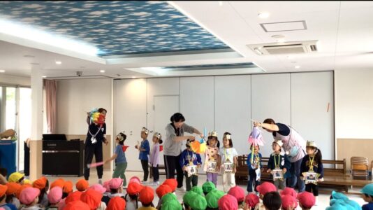 4月のお誕生会!お誕生日の年中ぐみと年長ぐみのお友だちには「大きくなったら何になりたいもの」、年少ぐみのお友だちには「好きな食べ物」をインタビューしました!!