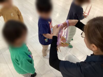 3月のおたのしみ会から3週間がたって、4月になりました!ふかっこプレ教室うさぐみさんの第1回目のあそびは「プレにゅうえんしき」です✨