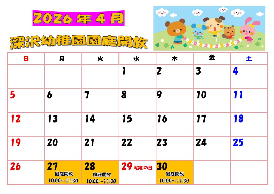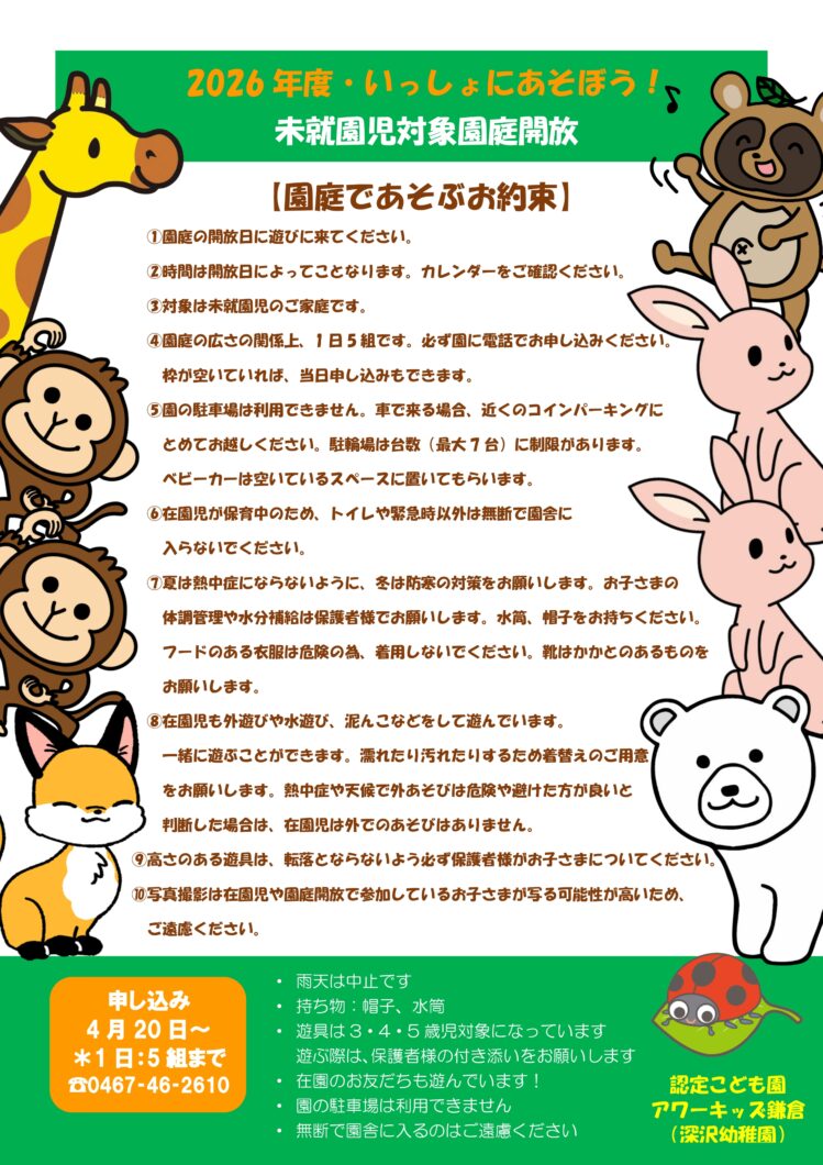 4月~8月の園庭開放のお知らせです!!4月20日から受付開始です😊