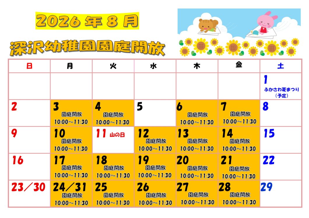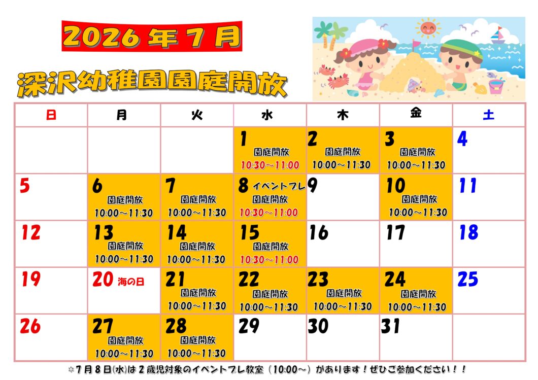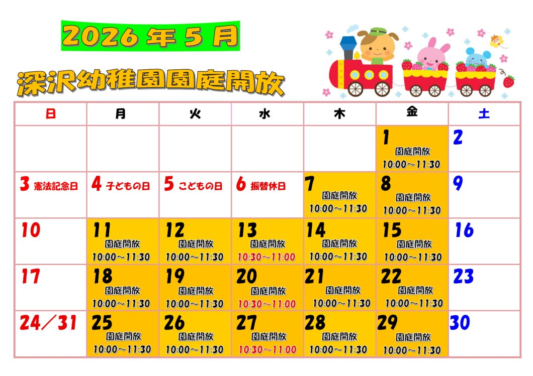 4月~8月の園庭開放のご案内!(未就園児対象)