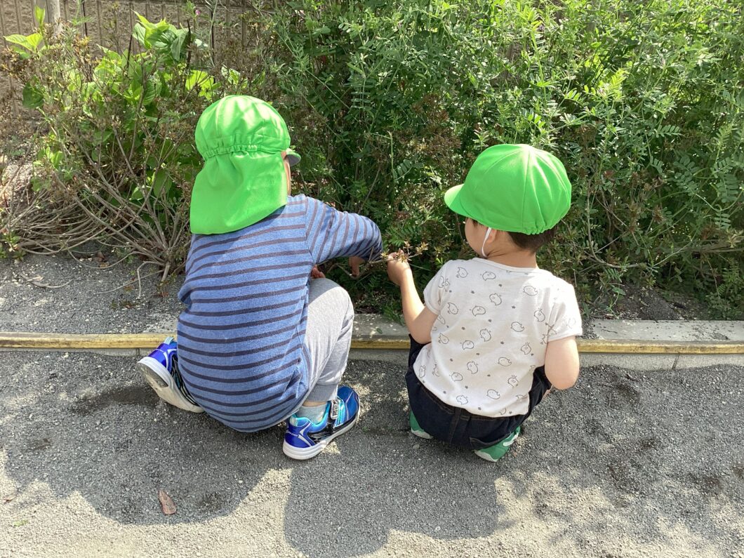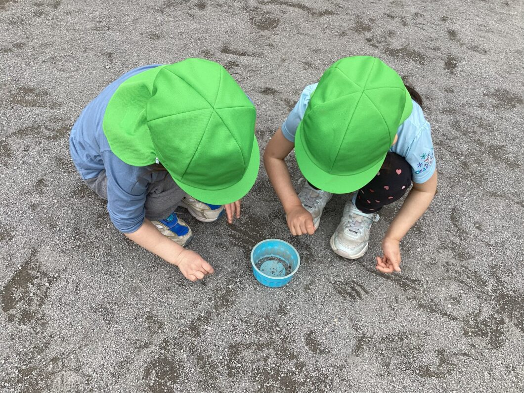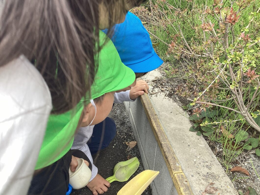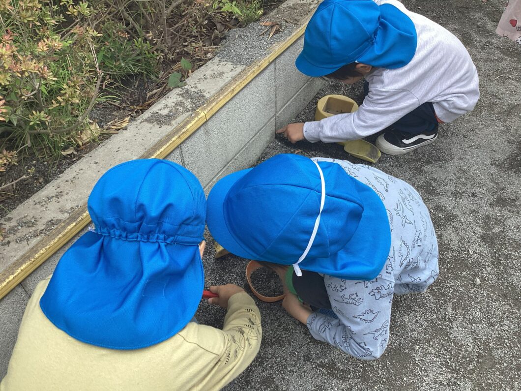 HOME > 園だより > 園だより ダンゴムシみ~つけた!~年中ぐみ~ 2026年4月20日 4月中旬になると気候も暖かく、外でのんびりあそびたくなる時期です。子どもたちが園庭に出てくると、花壇の虫たちも顔をのぞかせているのか、アリやダンゴムシを発見することができます😊春の時期は虫たち、特にダンゴムシ探しが夢中になっているあそびです! ダンゴムシを虫かごや砂場のおもちゃにそっと入れて、動きをじっと見て楽しんでいます。お片付けは「おうちにかえそう!」と言って、ダンゴムシが好きそうな場所を探したり、見つけた場所にそっと戻す姿が見られました。