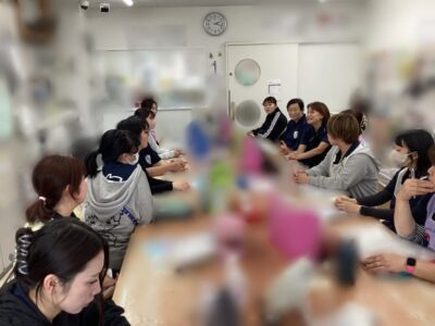 子どもたちと関わる中で素敵だと思ったエピソードを発表してもらいました!まじめな話も、心がほっこりした話も、聞いている先生たちも笑顔になる話も出てきました。