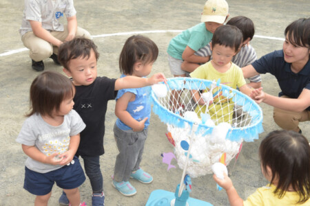おうちのひとのしっぽを『えいっ!!』しっぽが取れたらお花を貼っていくと・・・