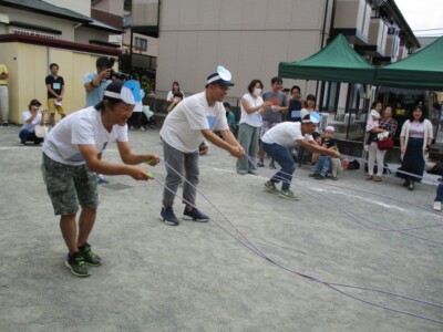 最後は綱引き!!お友だちのお父さんとひっぱりっこだ!!