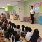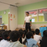 訓練終了後は、幼児クラスの子どもたちにお巡りさんの仕事の話しや