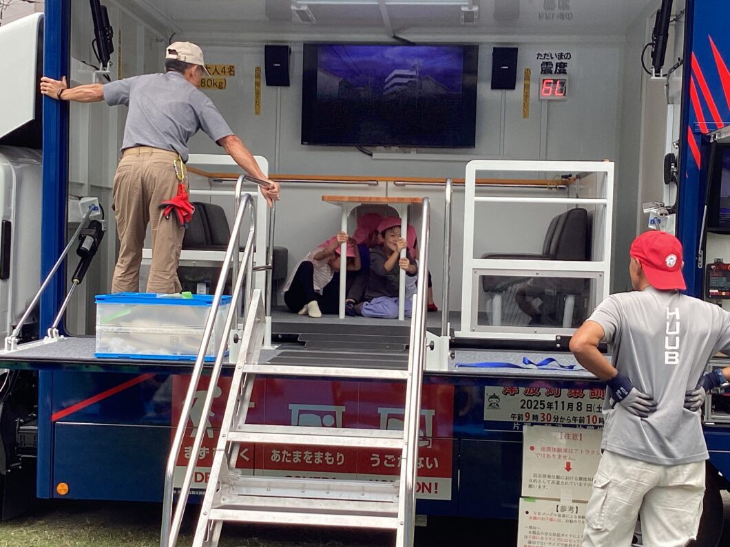 10月14日にアワーキッズ湘南のお友だちと一緒に起震車の体験をしてきました。